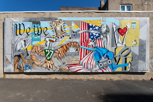 If you were asked to describe Philadelphia through pictures, Jared Owens’ mural will showcase the city best. Designed with input from the youth at Northeast Treatment Center, the mural’s design was created and brought to life. While it drew inspiration from Picasso’s Guernica, depicting war, Owens’ version utilized bright, colorful symbolic imagery to capture Philly in a positive light.