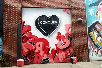 If you’ve ever walked the streets of Philly, you’ve probably come across a black and white heart painted on a wall with a short, bold phrase. Amberella is the mastermind behind the “Gothic Hearts” series. One of the most recognizable pieces, the “Conquer” Gothic Heart, is located at Front Street Walls among other vibrant murals. This mural was a special collaboration between Amberella and fellow Philadelphia-based artist James McMenamin, also known as Gloss Black. In an Instagram post, Amberella shares that this wall is one of her favorites, as it was created in response to bullying and as a form of self-expression during a dark period in her life. Over time, the mural has taken on a new, uplifting meaning for others. So, when you come across this piece and snap a photo, take a moment to reflect on the powerful message the artist is sharing.