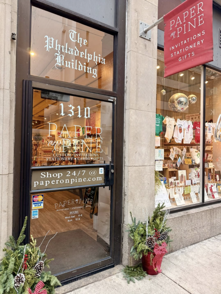 Located in the heart of Center City, Paper on Pine is a charming boutique specializing in beautifully curated stationery, greeting cards, and thoughtful gifts for every occasion. Whether you’re looking for custom invitations, holiday cards, or unique wrapping accessories, this shop adds a personal touch to every celebration. The warm, elegant atmosphere makes it a joy to browse, especially during the festive season! Shopping at Paper on Pine means finding something truly special, and supporting a beloved Philadelphia small business that’s been spreading joy one card at a time!